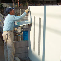 ブロックやコンクリートの擁壁を土壁風に仕上げる化粧左官は、意外とコストも安く、人気の仕上げ材です。