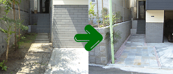 古くなった土間と玄関へのアプローチをやり替えたいとのご要望でした。