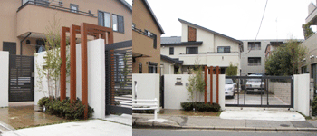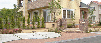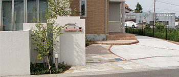車を出す際の安全を考え、車庫の出口を少し後退させ、ゆったり奥行きがある門周になりました。